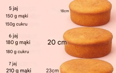 Biszkopt 5-jajeczny (forma 18 cm) Składniki : 5 jajek 150 g mąki 150 g cukru Przygotowanie: Podobnie jak poprzednio, w…